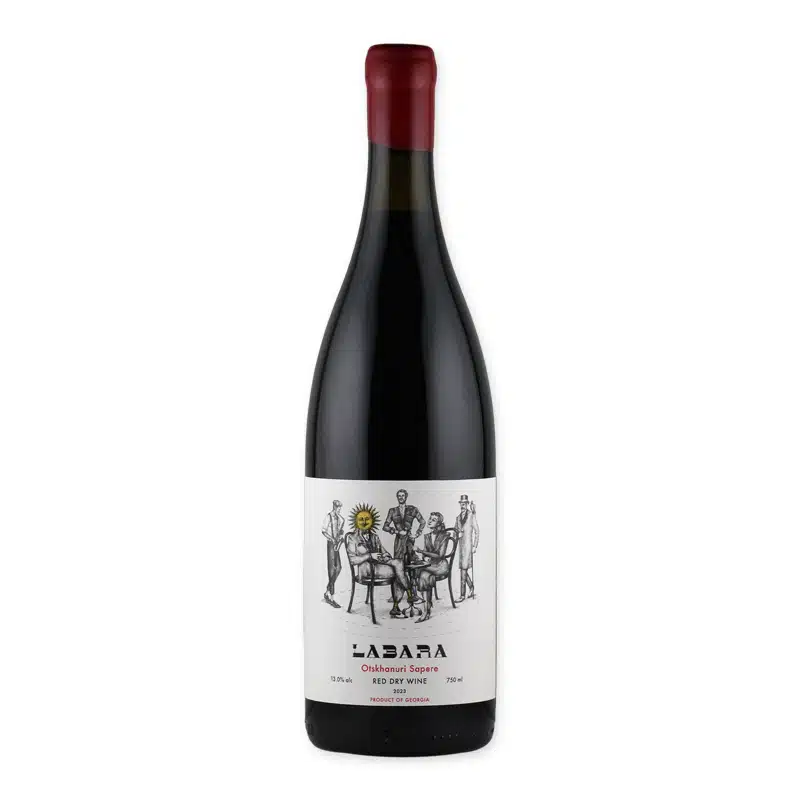 Labara Otskhanuri Sapere is a dry red wine from Imereti, Western Georgia, produced by Labara Family Wine Cellar. The wine is made from 100% Otskhanuri Sapere, a rare and local grape variety known for its crisp acidity and distinctive character.